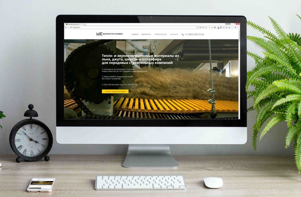 Одностраничный сайт и набор полиграфических материалов для компании «Мануфактура Кузьмина»